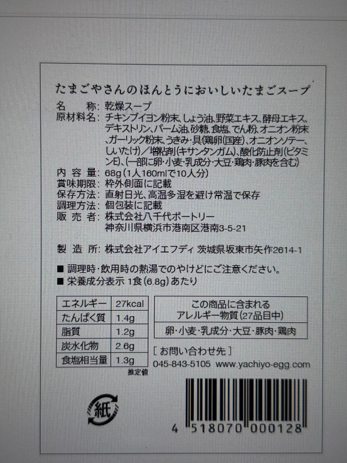 特別な一杯、たまごやさんのほんとうにおいしいたまごスープ。厳選された新鮮な卵を使用し、素材本来の旨味を最大限に引き出したスープです。自然な甘みと深いコクが広がる、家族みんなで楽しめる味わいに仕上げました。特製のスープは、風味豊かなだしと絶妙なバランスが自慢で、手軽に本格的なスープを楽しむことができます。パッケージもシンプルでおしゃれ。食卓に彩りを添える素敵なデザインです。